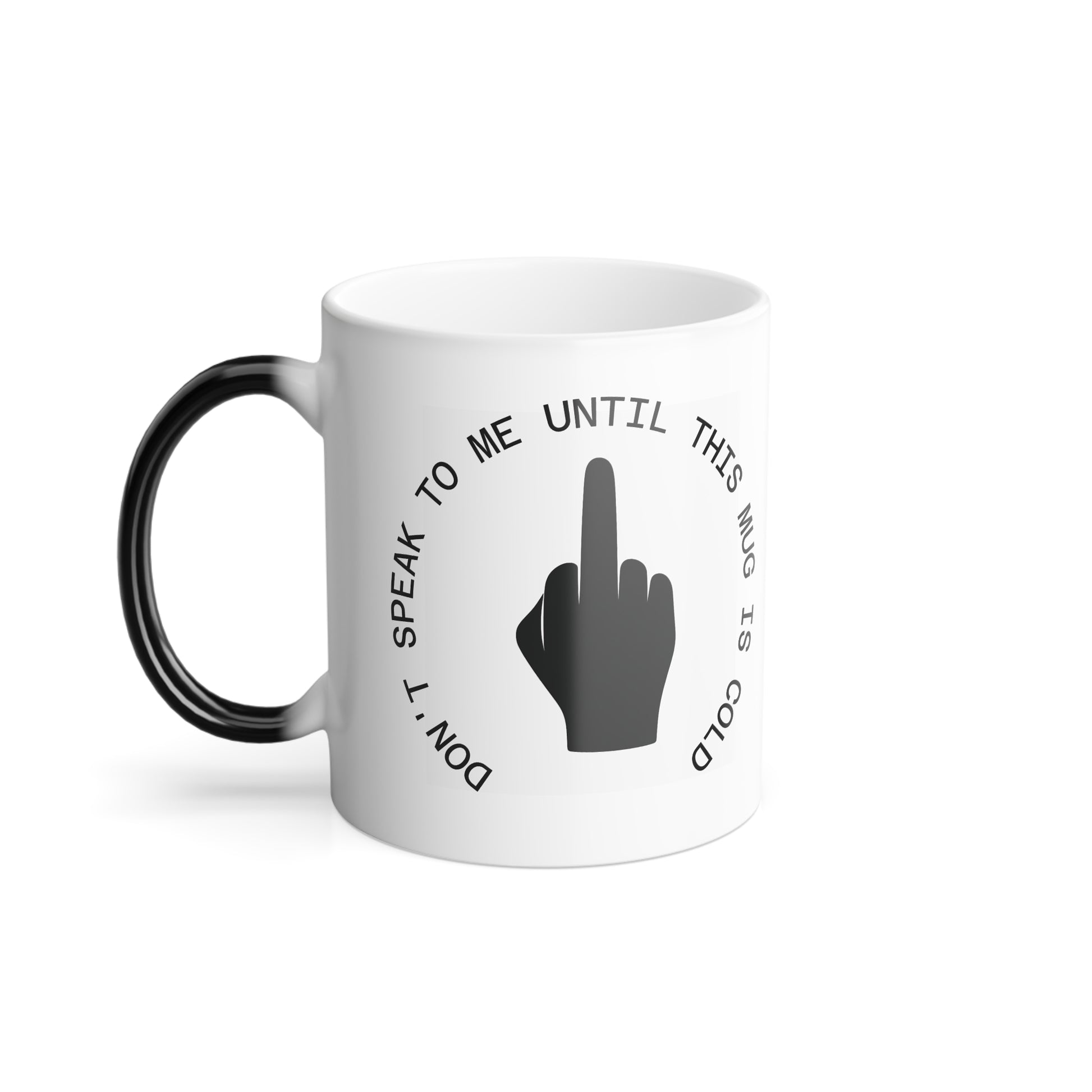 This mug changes color and will be the gift that keeps on giving. The heat-reactive surface reveals my custom design once the mug gets warm. The ceramic cup will go back to its original black outside and white inside when it cools down. The C-shaped handle helps keep a sturdy grip. It comes in one size – 11oz